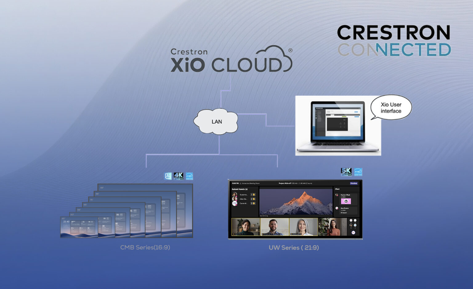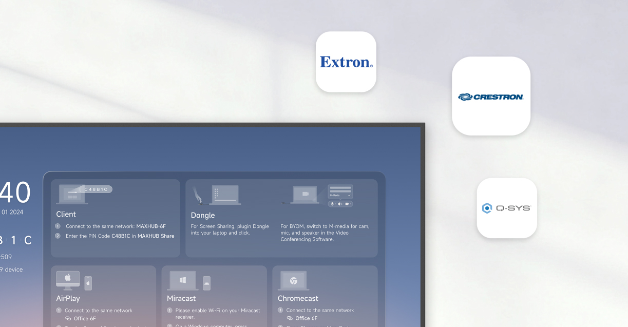 Crestron 官方认证 – 更智能的 AV 集成MAXHUB CMB 系列 (43″-98″) 与 UW 系列 (92″/105″) 已获得 Crestron Connected® 官方认证,支持一键电源开关与信号源切换、实时状态诊断以及通过 XiO Cloud® 进行远程更新。 凭借对 Crestron AirMedia® 的直接集成支持,该系列显示屏特别适用于小型会议室 (Huddle Room)、教室、接待大厅及 Microsoft Teams Rooms。 该解决方案已在全球企业中广泛部署,能够有效缩短安装时间、降低运维成本,并在无需自定义编程的情况下简化 AV/IT 集中管理。 |