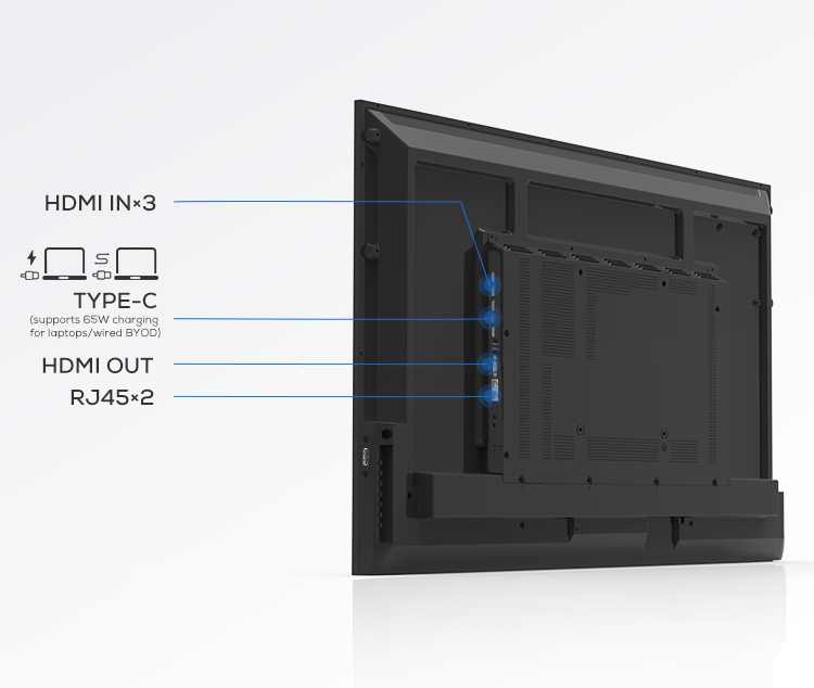 全方位连接 – 绝对掌控能力该显示屏配备了多功能 Type-C 接口、三路 HDMI 输入/输出以及双千兆网口,全面满足专业级 AV 影音连接需求。 支持 RS232、IP 控制及 HDMI CEC 协议,实现了设备的高度灵活集成与简便的集中管理。 凭借同步控制与系统扩展能力,该产品特别适用于高端会议室、数字标牌系统以及各类复杂的控制运行环境。 |