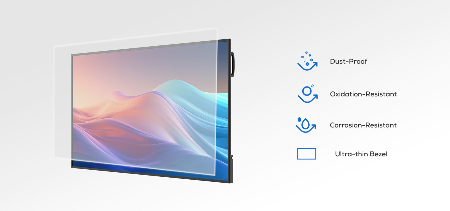 该显示屏专为高强度商业运行环境打造,将极简、奢华的设计风格与超窄边框相结合,屏占比高达 95%。一体化高端金属中框提供了卓越的耐用性,完美适配各类高标准使用空间。