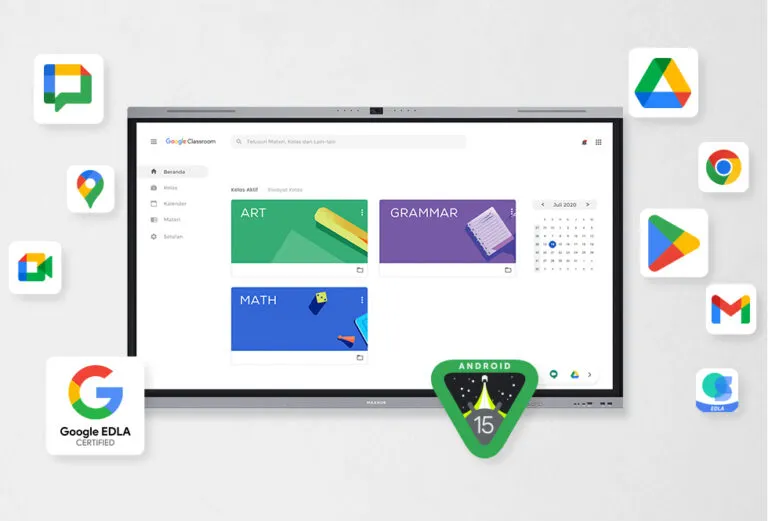 MAXHUB EDU OS 已获得 Google EDLA 认证并搭载 Android 15 系统,实现了与 YouTube、Google Classroom 及 Google Play 的无缝集成。