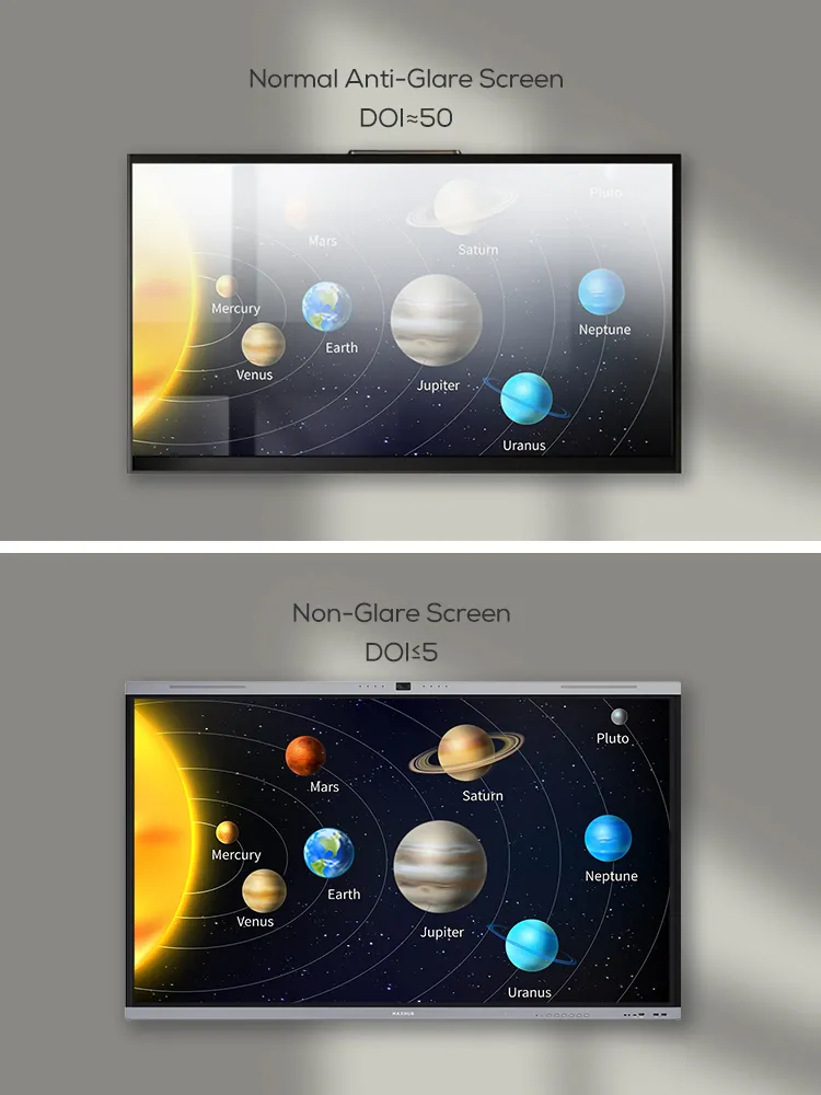 MAXHUB U8640 采用防眩光(Non-Glare)屏幕技术,能有效减少光线反射,即使在强光环境下也能确保画面始终清晰锐利。