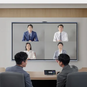 作为“KIT”版,其最大的亮点在于配备了 无线传屏与连接套件。通过即插即用的无线传屏器(Dongle),用户无需连接 HDMI 繁琐线缆,即可将笔记本电脑的内容秒传至大屏。更重要的是,该套件支持 无线外设调用(BYOM) 功能。这意味着您只需在电脑上运行 Zoom 或 Microsoft Teams 等会议软件,即可无线调用摄像头、麦克风和音响,彻底实现了会议室的“无线化”管理。