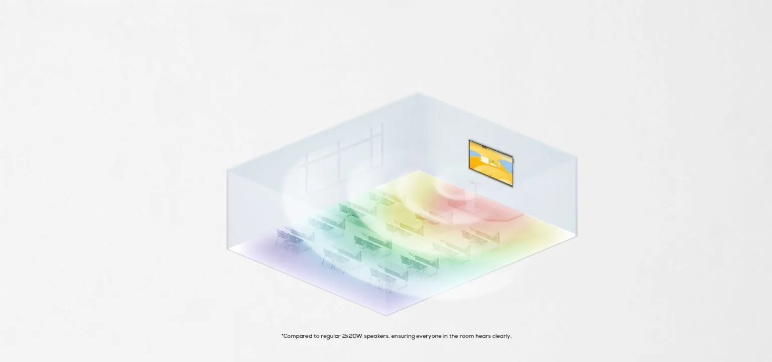 通过 MAXHUB Skywave 音响系统感受非凡差异。配备强劲的 2.2 声道架构与 4 单元大功率扬声器(2×12W 全频 + 2×25W 低音),带来清晰、生动且覆盖全场的环绕音效。