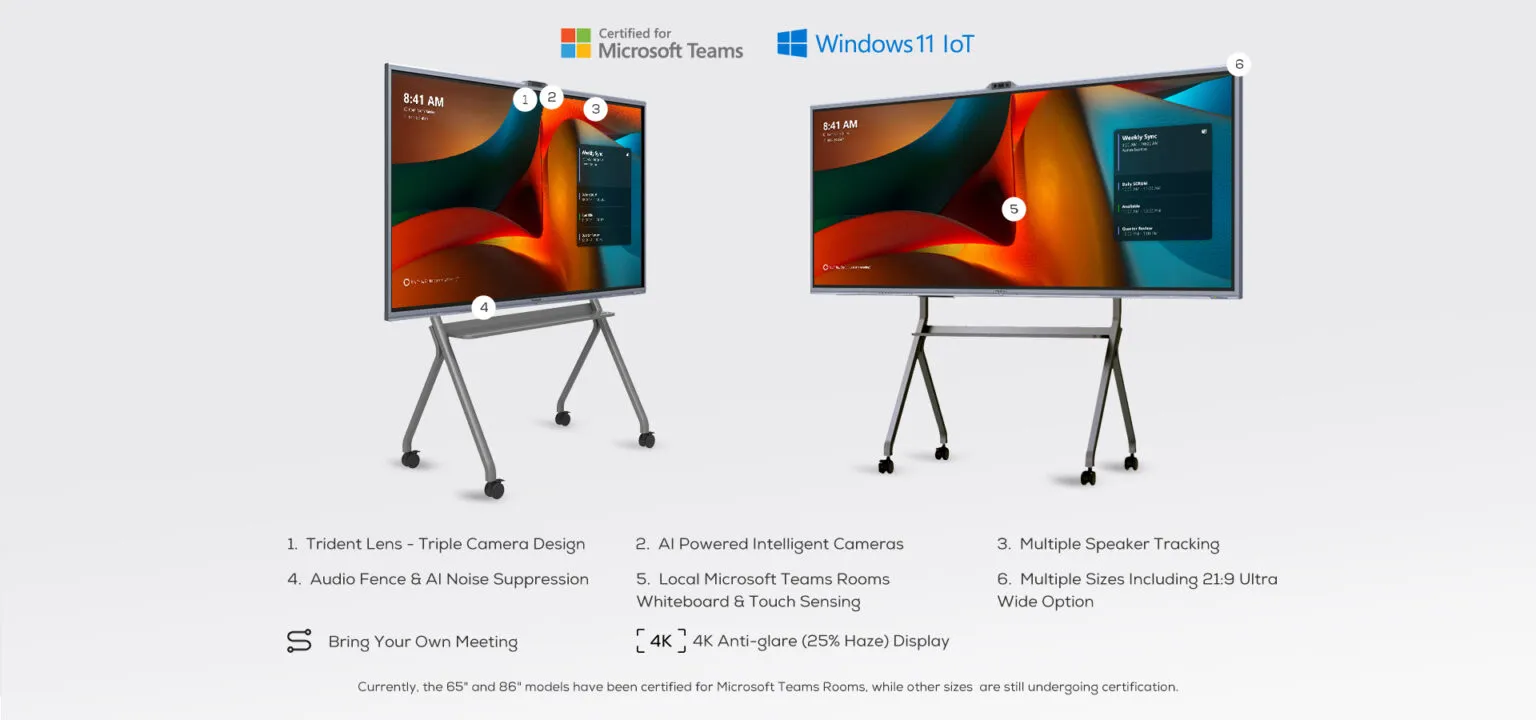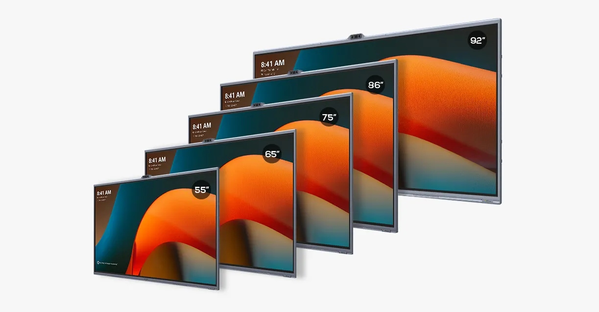 除 92 英寸型号外,该系列还提供传统的 16:9 比例选项,涵盖 55″、65″、75″ 和 86″ 多种尺寸,能够完美适配从小型协作空间到大型会议室的各种应用场景。