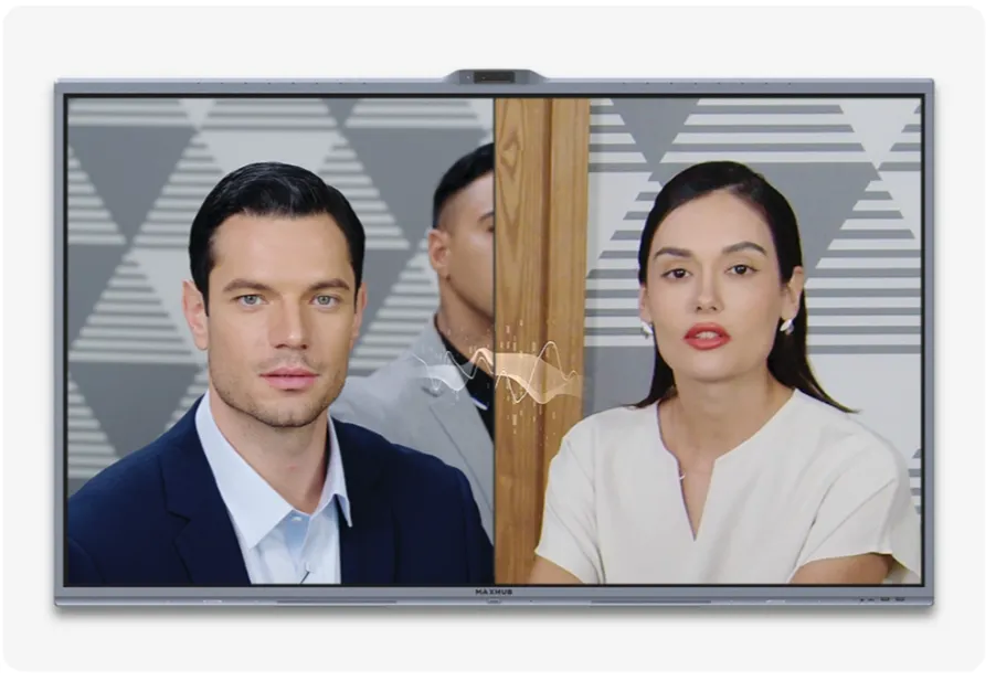 MAXHUB XBoard 配备三颗 5000 万像素高分辨率摄像头:一颗用于覆盖全景,另外两颗支持 2 倍光学变焦和 5 倍混合变焦,能够清晰呈现会议室全貌,并精准捕捉参会人员的表情及细微之处。