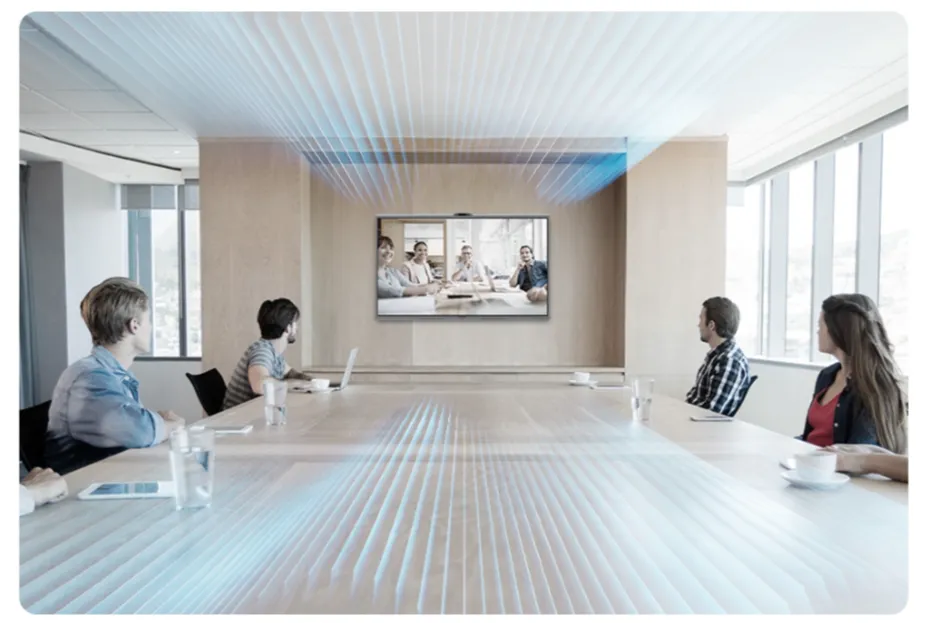 AI 空间音频 我们的系统能够自动适应您的空间,提供最优 EQ 模式来自定义隔音角度,确保卓越的音质。为远程参会者提供清晰的沟通环境,完全不受外界干扰。 |